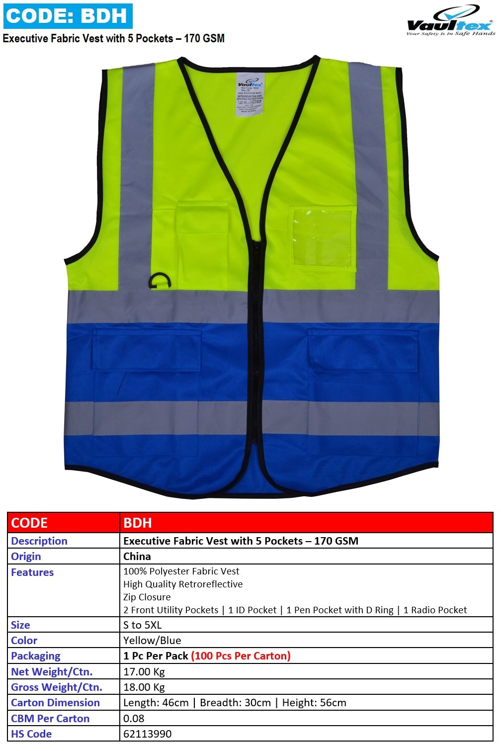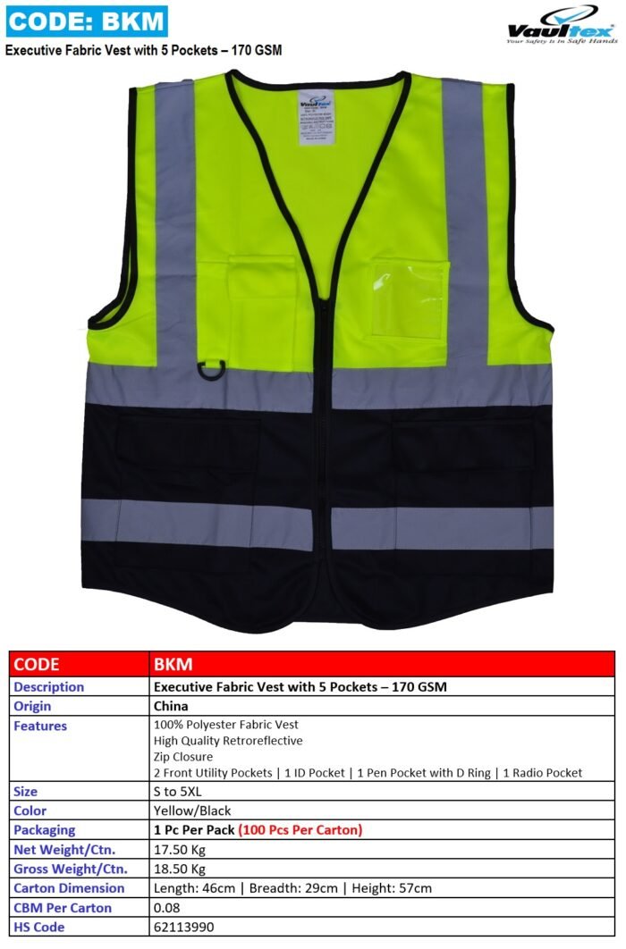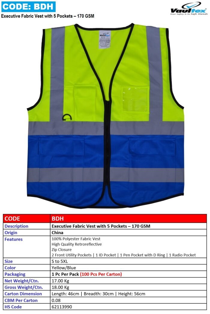 EXECUTIVE FABRIC VEST WITH 5 POCKETS – 170 GSM