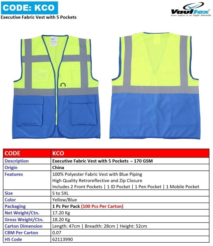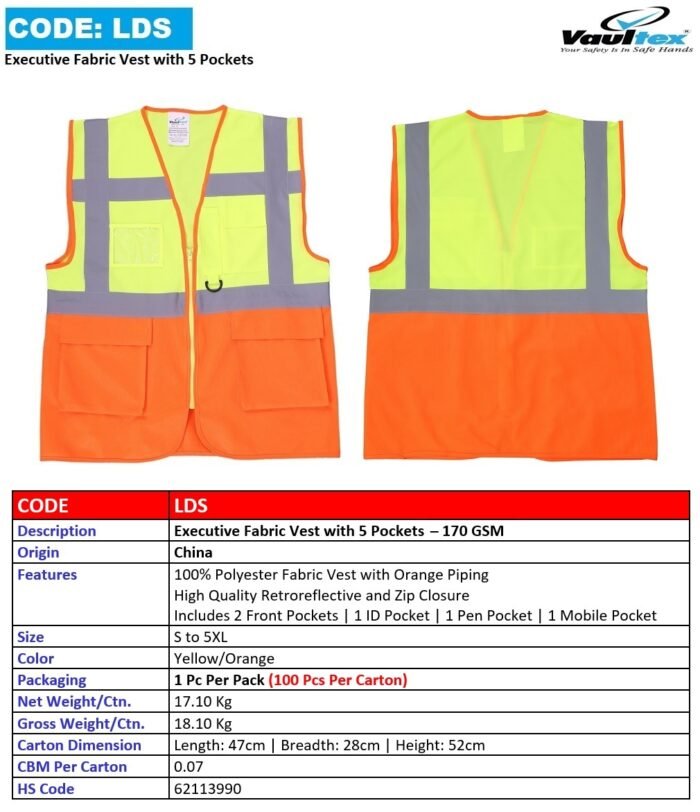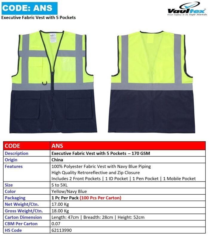 EXECUTIVE FABRIC VEST WITH 5 POCKETS – 170 GSM