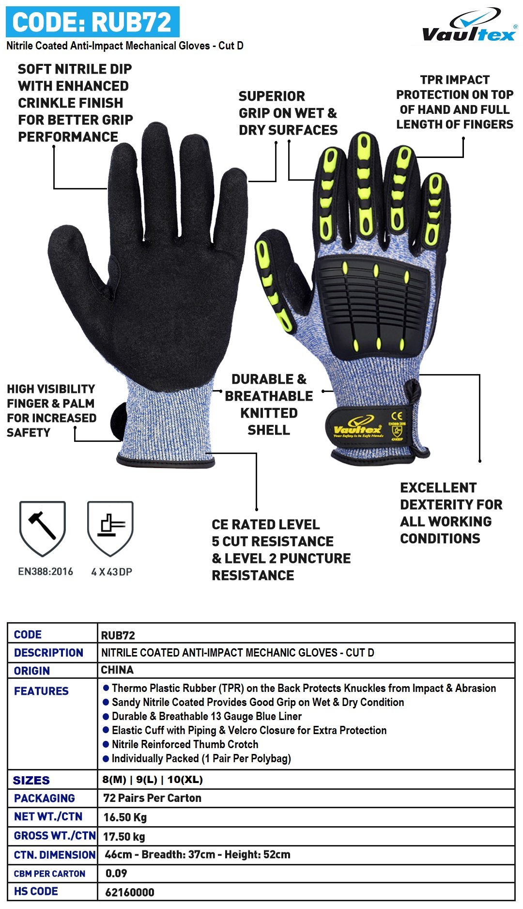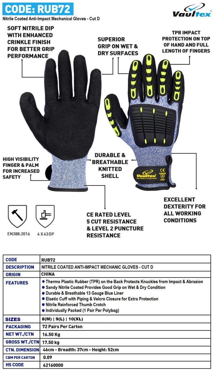 NITRILE-COATED ANTI-IMPACT MECHANIC GLOVES – CUT D