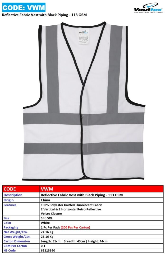 Reflective Fabric Vest with Black Piping – 113 GSM